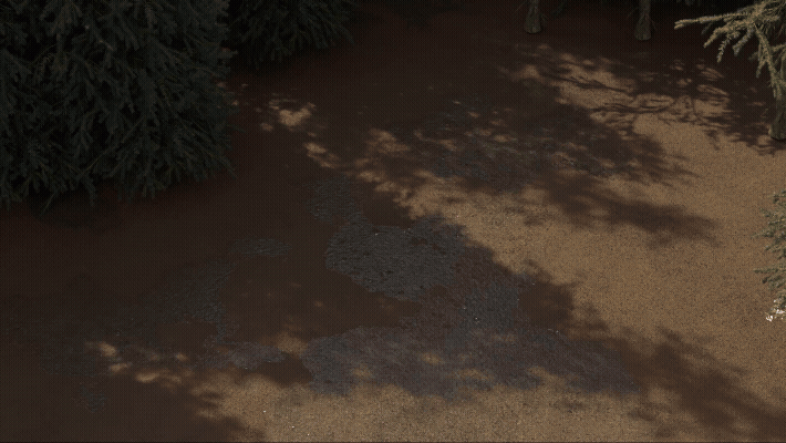 The first layout was a single shot that focused primarily on how the car interacts with the mud simulation. The car’s height provided enough clearance between the undercarriage and the muddy ground, and the placement of the simulation created opportunities for the mud to splash naturally.