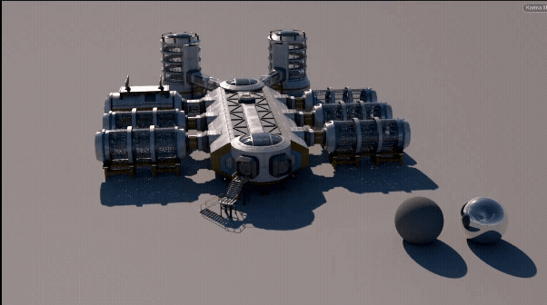 When preparing the KitBash 3D assets in Houdini, I needed test the quality of the materials with different lightings, similar to the Coca-Cola bottle. I used two spheres, one with a metallic shader and one with a diffused grey shader. The spheres show what the lighting looks like on a neutral material to compare what it looks like on the detailed textures on the model.