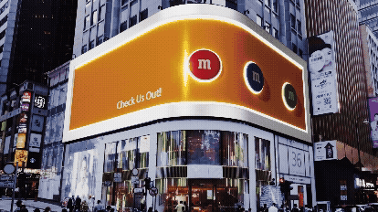 Create a 10 to 15 second looping anamorphic billboard experience for M&M. Use anamorphic illusion and forced perspective techniques to make the product appear as if it’s physically bursting out of the screen and into the viewer’s space. Design a dynamic, immersive activation that goes beyond a static image to captivate and stop people in their tracks.